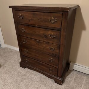 Dark Brown Vintage Solid Wood Bedroom Set with Newsprint-Lined Drawers (see prices below)