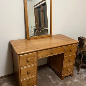 Beautiful 7-Drawer Antique Maple Vanity, Dovetailed, with Recessed Sides and Matching Wall Mirror