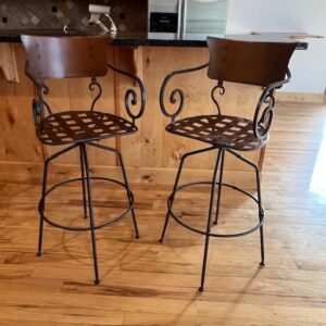 Set of 2 Bronze Iron Bar Height Swivel Stools with Backs ($75 each)