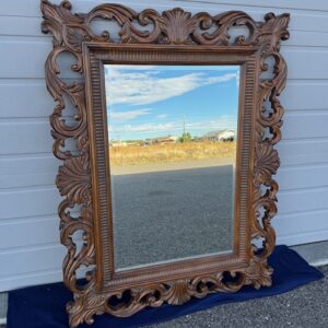 LIKE NEW High End Antique Ornate Solid Wood Framed Beveled Glass Wall Mirror