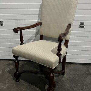 Quality Dark Brown Antique Solid Wood Accent Chair with Cream-Colored Upholstery