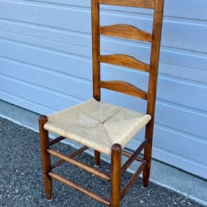 Antique Solid Wood Ladder Back Chair with Rush Seat