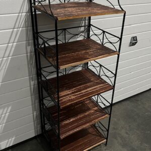 Narrow 5-Tier Wrought Iron Pier 1 Shelf Unit with Wooden Shelves