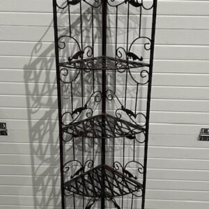 Tall Collapsible 5-Tier Wrought Iron Corner Shelf with Swirly Design