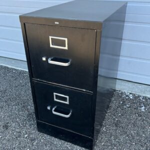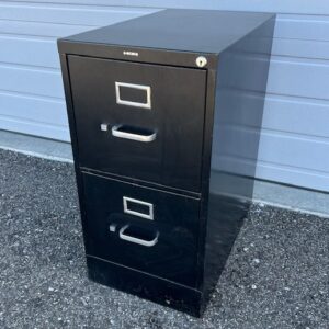 LIKE NEW Tall Black 2-Drawer Steel and Pressboard Office Cabinet with File Drawer and Shelves Above