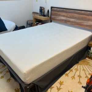 LIKE NEW Brown Rustic Industrial Queen Platform Bed with Wood Headboard and Black Steel Trim and Frame