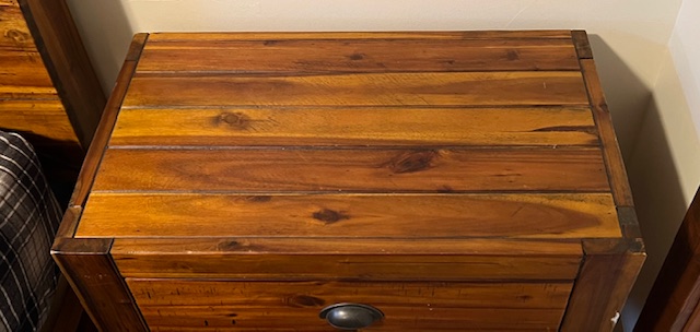 2 Rustic Solid Wood Full Size Bedroom Sets with Inlay: Each bedroom set includes a dresser, bed frame, and night stand. Mix and match! Prices will be posted soon.