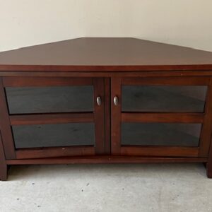 Cherry pressboard flat screen storage TV stand in overall great condition, with a little bit of wear. (SKU# CB2/1265) Dimensions will be posted soon.