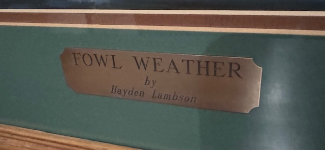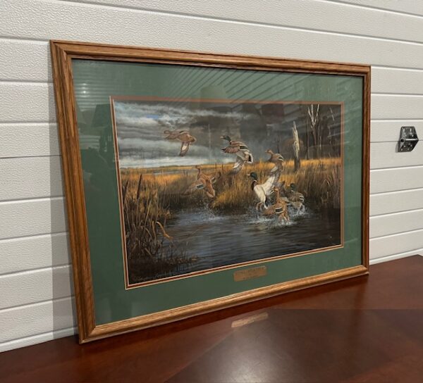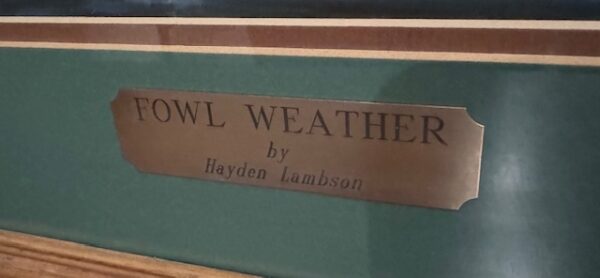 Ducks Unlimited Oak Framed Matted Print “Fowl Weather” by Hayden Lambson: Excellent condition! Dimensions will be posted soon.