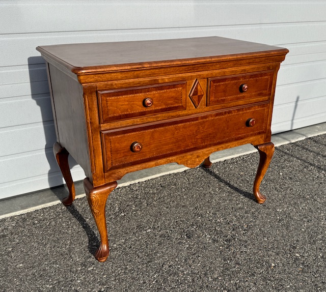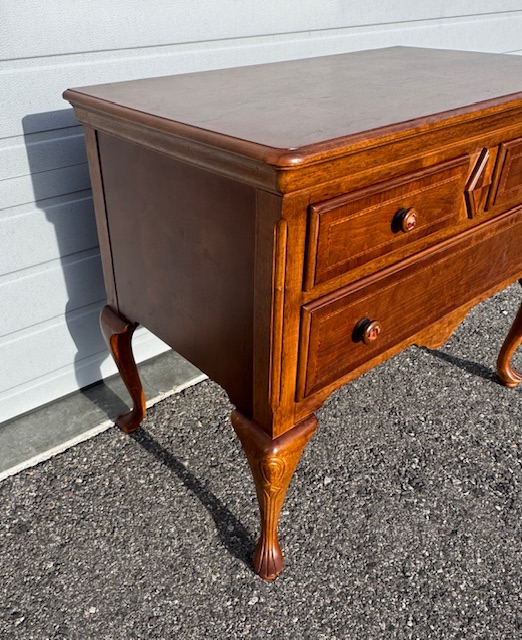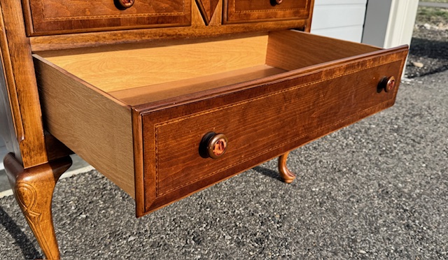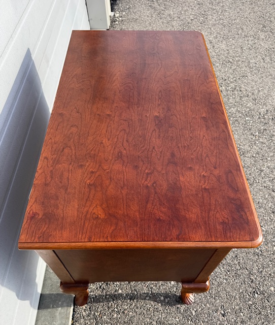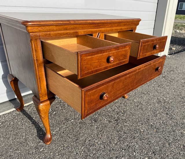 Solid Wood 4-Drawer Queen Anne Sideboard Chest: Sturdy and in beautiful condition! Drawers slide smoothly. 40″ long x 23″ deep x 33″ tall.