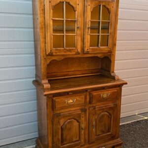 Temple-Stuart Early American Solid Wood 2-Drawer Hutch with Upper and Lower Cabinets and Divided Glass Doors