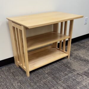 Gray Steel Vintage Credenza or Printer Stand with Interior Shelf, on Locking Casters (SKU# CB3/358): Sturdy and in great condition! 30″ wide x 21″ deep x 26.5″ tall.