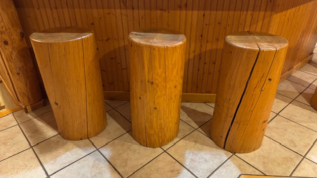 High End Rustic Log Stump Bar Height Stools: Heavy, sturdy, and in great condition! 14″ in diameter x 29.5″ tall. Three (3) available at $80 each. Sold as a set for $240.