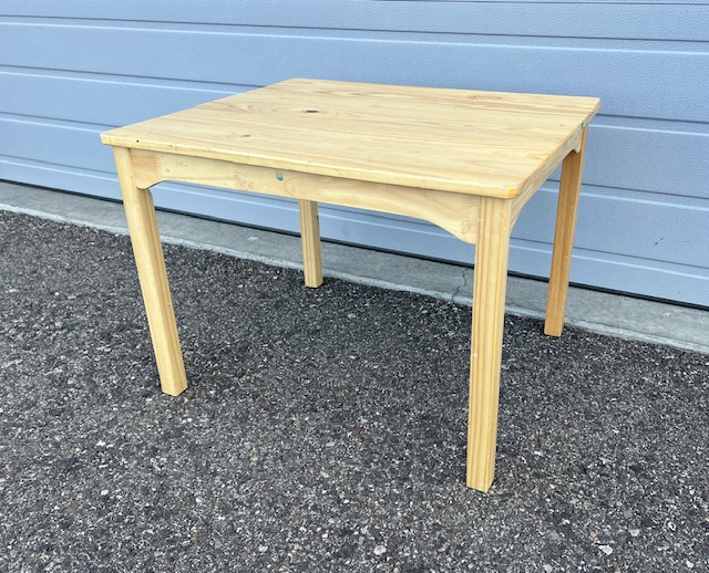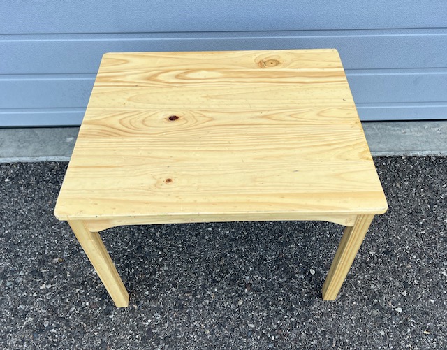 Light Brown Wooden Kids Table with 4 Brightly Colored Wooden Chairs: Sturdy and in great condition! Dimensions will be posted soon. $65 for the 4-piece set.