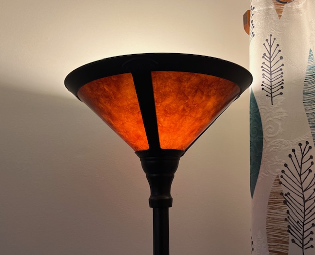 LIKE NEW Black Torchiere Floor Lamp with Mica Shade
