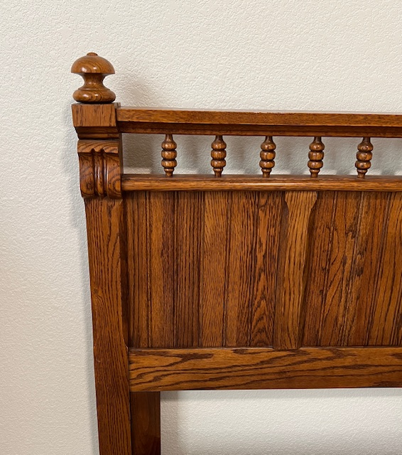 LIKE NEW High End Lexington Recollections Solid Oak Queen Headboard with Short Spindles and Short Posts (SKU# CB6/134): 61″ long x 47″ tall.