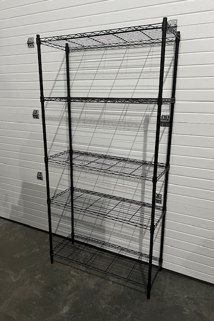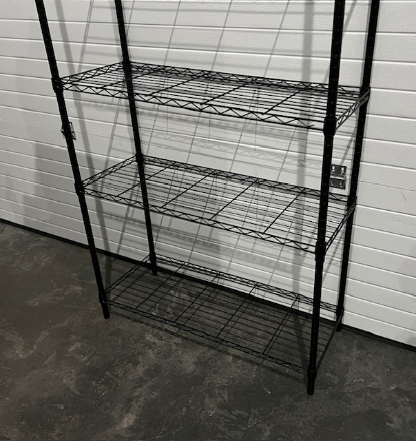 LIKE NEW Tall Black Wire Shelf Unit:  Sturdy, multipurpose shelf!  Dimensions will be posted soon.