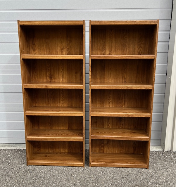 LIKE NEW Tall Sauder Bookcases (SKU# CB6/409): Shelves are adjustable. 30″ wide x 11.75″ deep x 71.5″ tall. Two (2) available at $90 each. Will sell together or separately.