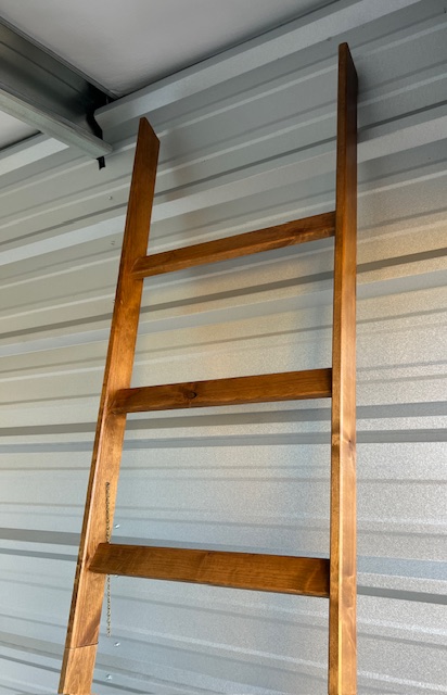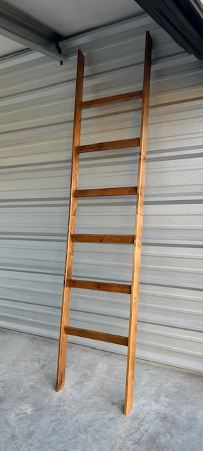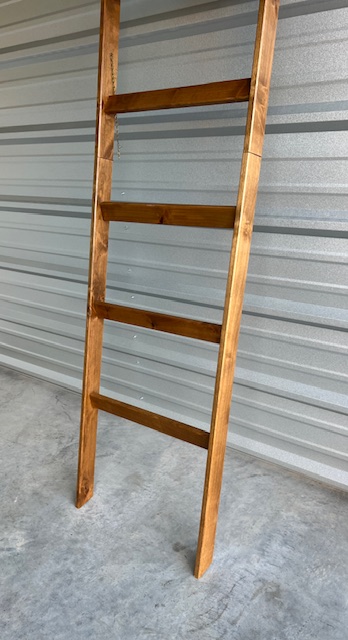 LIKE NEW Tall Solid Wood Quilt Rack: Sturdy, spacious piece! Folds to half its size, and includes chains for attaching it to the wall. 22″ wide x 96″ tall (92″ tall leaned against a wall).