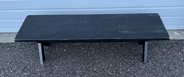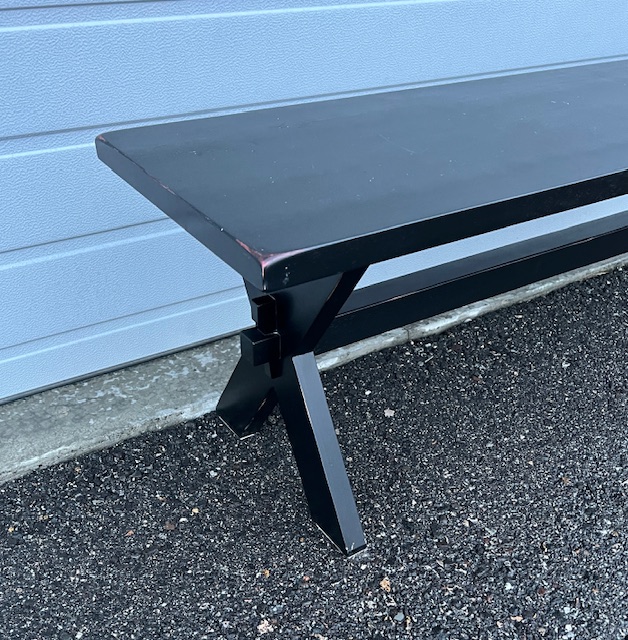 Quality 5′ Black Solid Wood Double Pedestal Bench (SKU# CB6/49): Very sturdy and in great condition, with a little bit of wear to the finish. 60″ long x 16″ deep x 18″ tall.