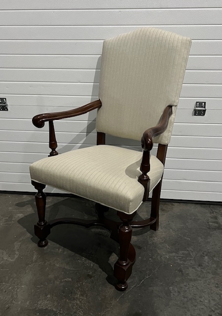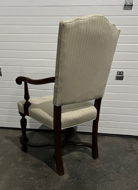 Quality Dark Brown Antique Solid Wood Accent Chair with Cream-Colored Upholstery (SKU# CB6/41B):  Very sturdy and in excellent condition!  No tears or stains.  22.5″ wide x 21″ deep x 19.5″ seat height and 41″ back height.