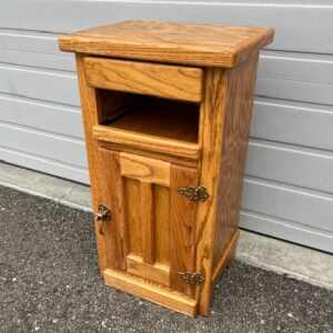 Quality Solid Oak Display Cabinets (SKU# CB3/634): Includes large open top section with 3 glass panels and mirrored backing, lower cabinet, and drawer. Drawer is on glides and slides smoothly. Top section lifts off. Cabinets are sturdy and in overall excellent condition with some wear on bottom right corner of each cabinet.  Dimensions will be posted soon.  These were $235 each . . . REDUCED to $198 each!  Will sell together or separately.