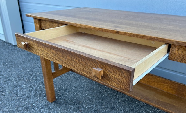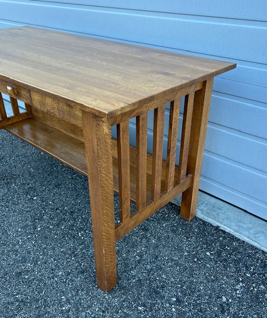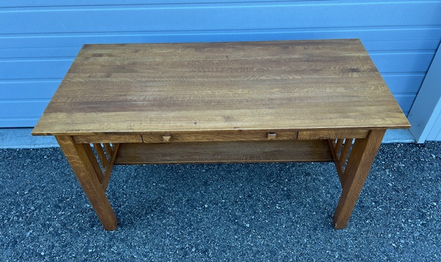 Quality Solid Oak Mission Style Writer’s Desk with Drawer on Glides and Interior Shelf: