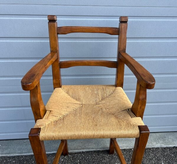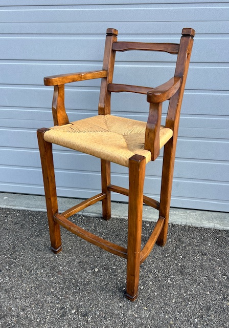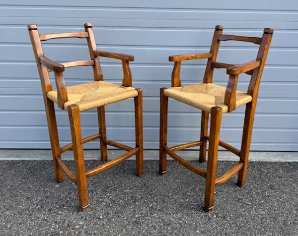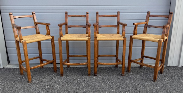 Quality Solid Wood Bar Height Stools with Rush Seats (SKU# CB5/1331): Sturdy and in great condition! 24” wide x 22” deep x 30” seat height and 47.5” back height. Four (4) available at $65 each. Will sell in sets of two or all 4.