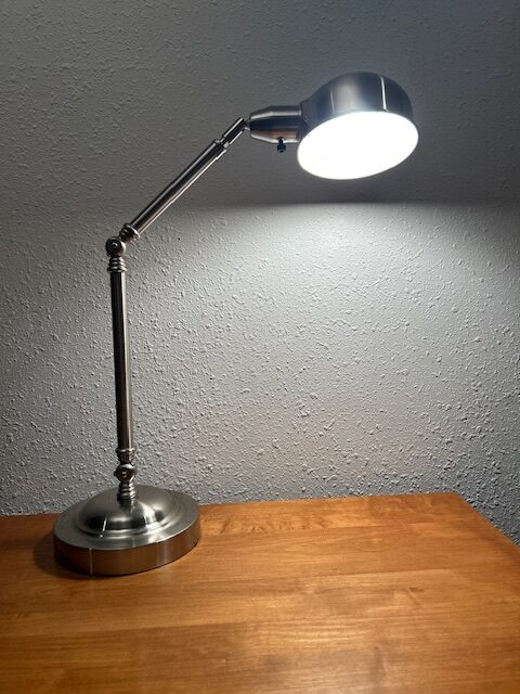 Quality Vintage Adjustable Brushed Nickel Desk Lamp with Round Dome Shade: Great condition!