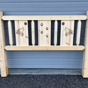 LIKE NEW Queen Size Log Headboard with Wolf Design, from Big Sky