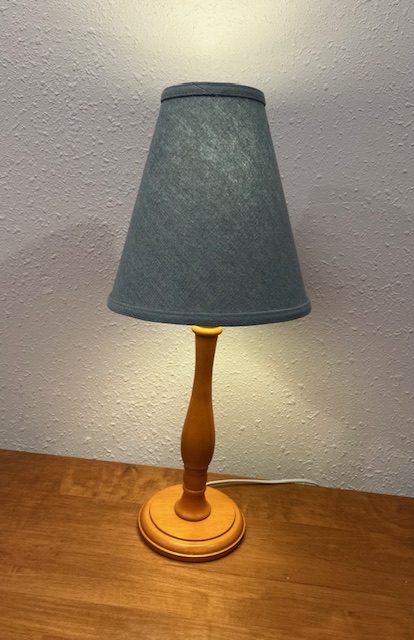 Slender Light Brown Wooden Table Lamp with Angled Blue Shade (SKU# CB5/1209):  Great condition!