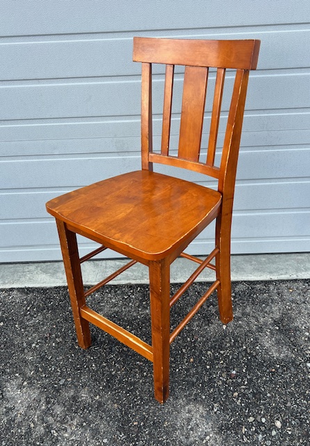 Solid Wood Counter Height Bar Stools with Backs and Cherry Finish (SKU# CB6/526): Sturdy and in nice condition, with a little bit of wear that has been touched up. One of the bar stools is missing one of its lower rungs, but it still sturdy. Two (2) available at $35 each. Sold as a set for $70.