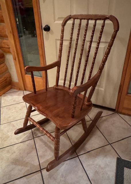 Solid Wood Jenny Lind Rocking Chair (SKU# CB6/187):  Beautiful condition!  22.5″ wide x 34″ deep (including base) x 18″ seat height and 42″ back height.