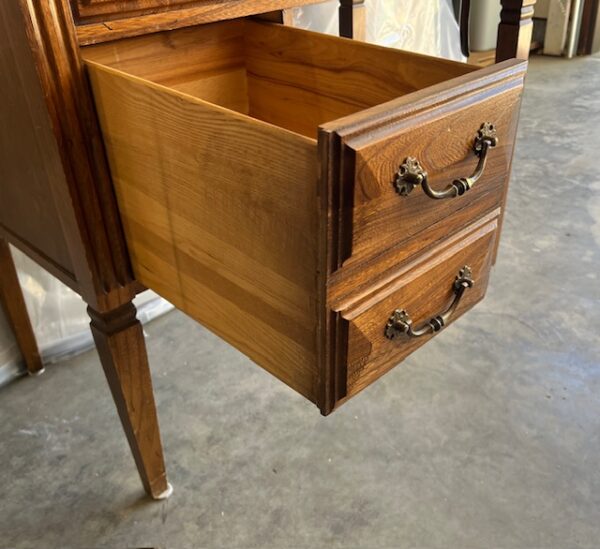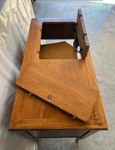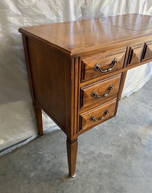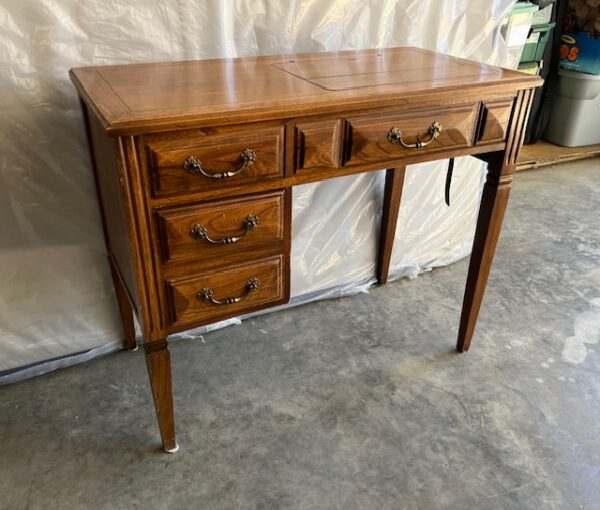 Solid Wood Mid-Century Modern Sewing Desk with Deep, Dovetailed Drawer:  Very sturdy and in great condition!  Drawer works well.  Dimensions will be posted soon.