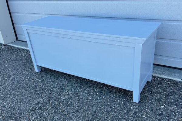 Sturdy Light Gray Wooden Shoe Bench (SKU# CB5/1354):  Great condition!  42″ long x 14″deep x 18″ tall.