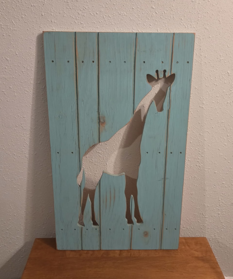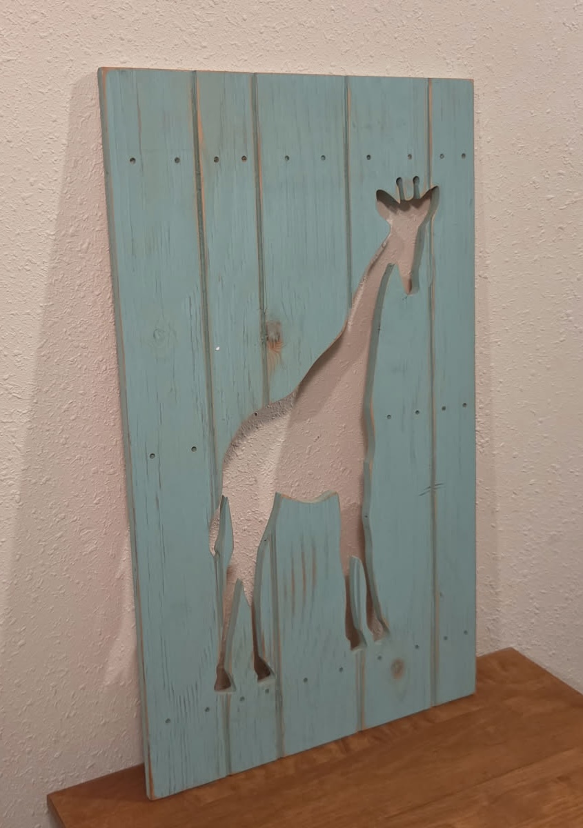 Unique Giraffe Wall Hanging, Teal Wooden Board with Cutout
