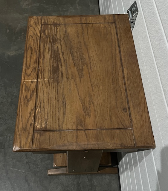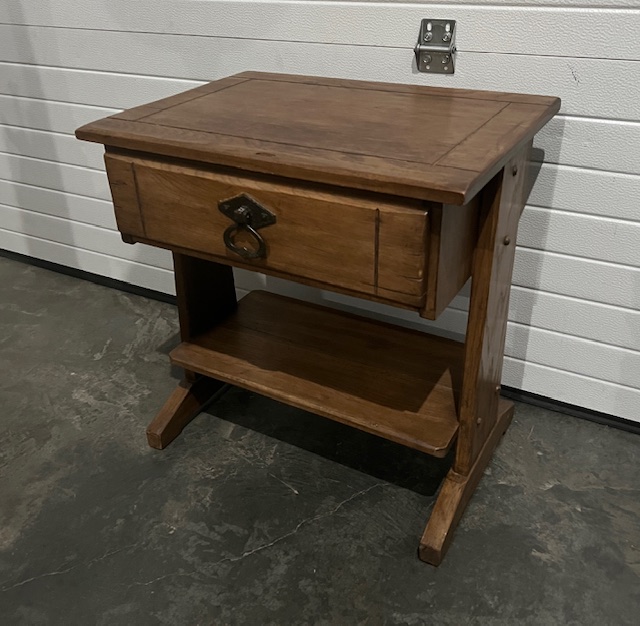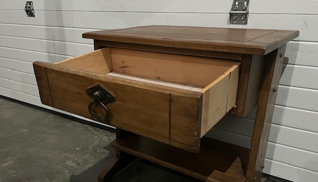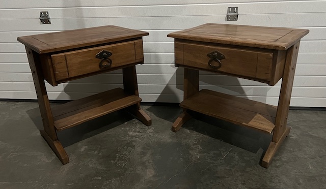 Vintage Solid Wood Bedside Tables with Top Drawer, Lower Shelf and Beveled Edging (SKU# CB6/271): Sturdy and in nice condition, with a little bit of wear. Drawers slide smoothly. By Williams Furniture, Sumter, SC. 22″ wide x 16″ deep x 23″ tall. Two (2) available at $115 each. Sold as a set for $230.